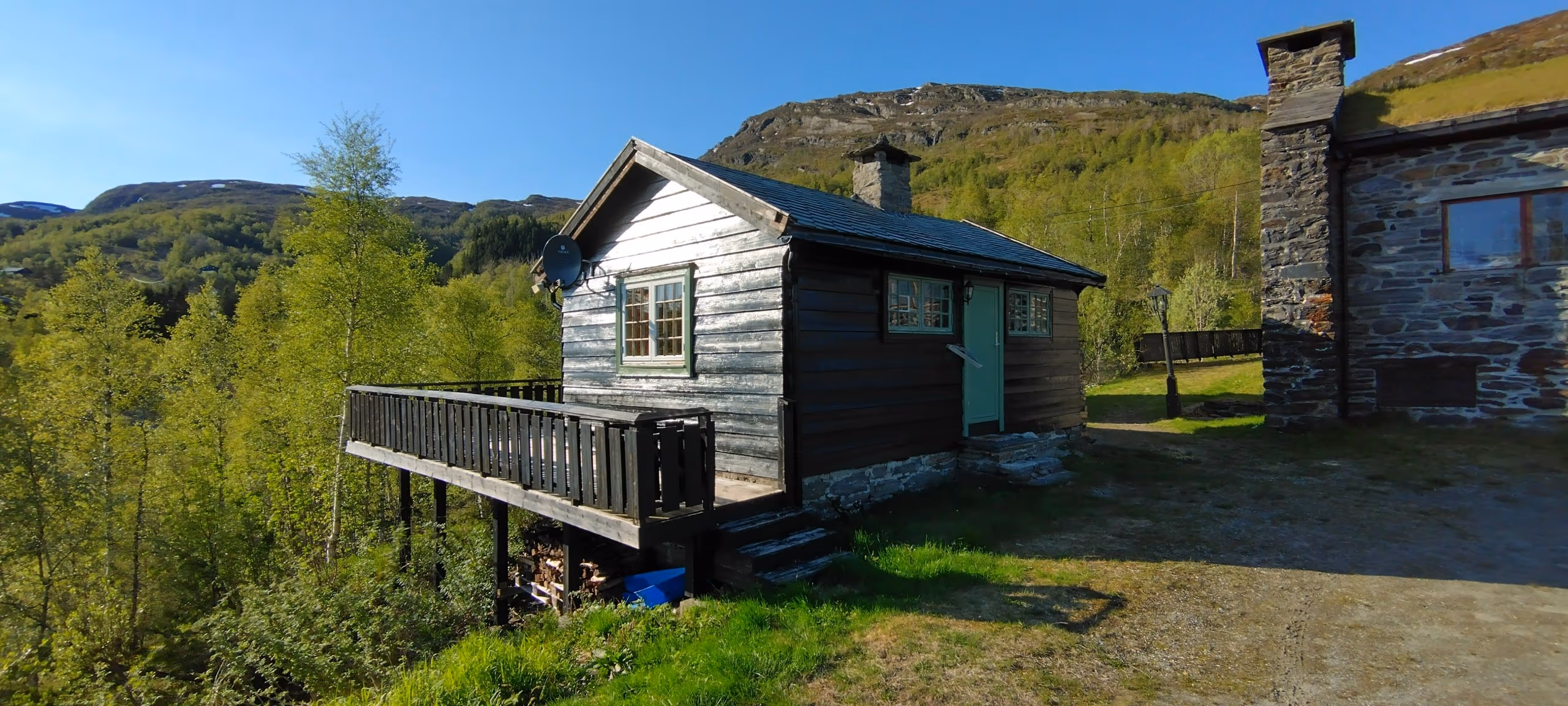 Hovudhuset, annekset og nærområdet — saman dannar dei ein unik leirstad på Kvamskogen.